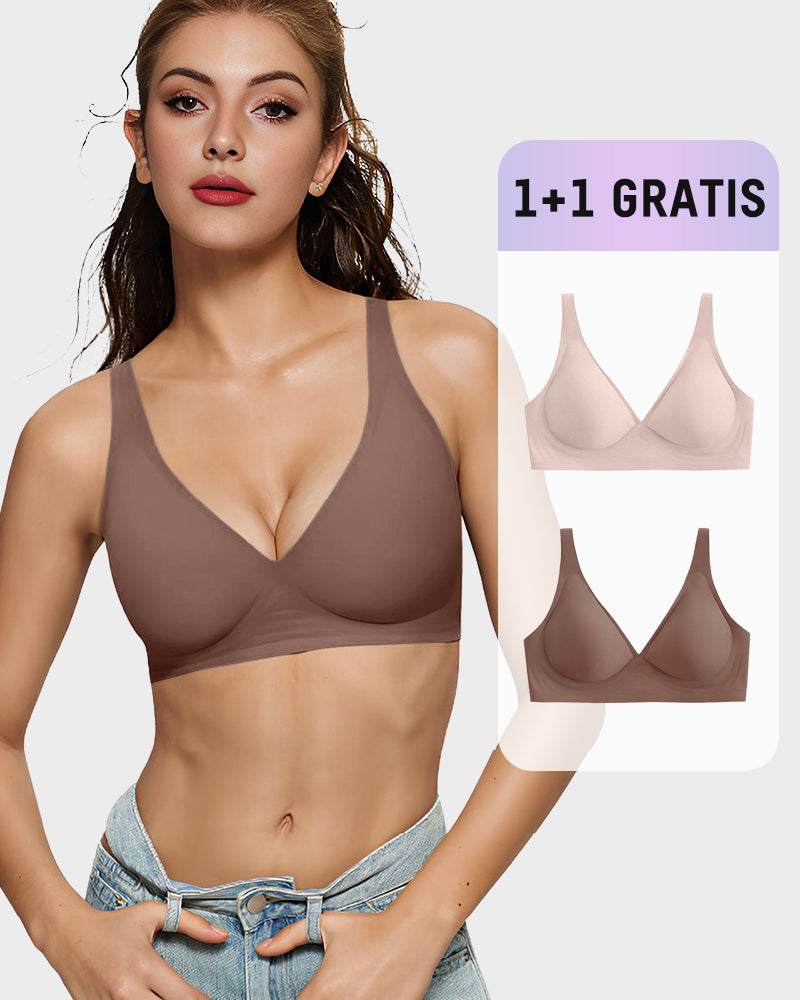 1+1 GRATIS – Nahtloser Push-up BH mit Tief-V & Gel-Streifen, bügellos & bequem